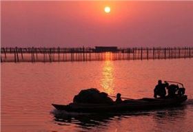正因为以前是一片良田,所以阳澄湖有着纯天然的上好水质,适合多种水生物生长。站在湖边远眺,岸边芦苇丛生,湖面波澜不惊,湖水清澈见底。一片片围网围住“茁壮成长”的大闸蟹,远处船影点点煞是好看。