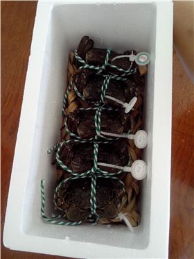 第二,我们的阳澄湖区域大闸蟹除了吃湖里的水草,都是用小鱼和玉米来喂养的,相较其他蟹农的人工饲料,我们纯天然,绿色无激素。人工饲料养殖的大闸蟹个子会比较小,但是生长周期更短,产量会很大,所以价格也就十分低廉。
